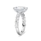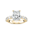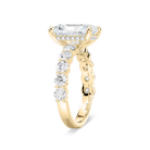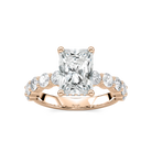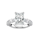 Radiant Shaped Shared Prong Engagement Ring with Hidden Halo