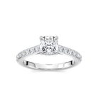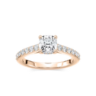 Cushion Shared Prong Engagement Ring with Hidden Halo
