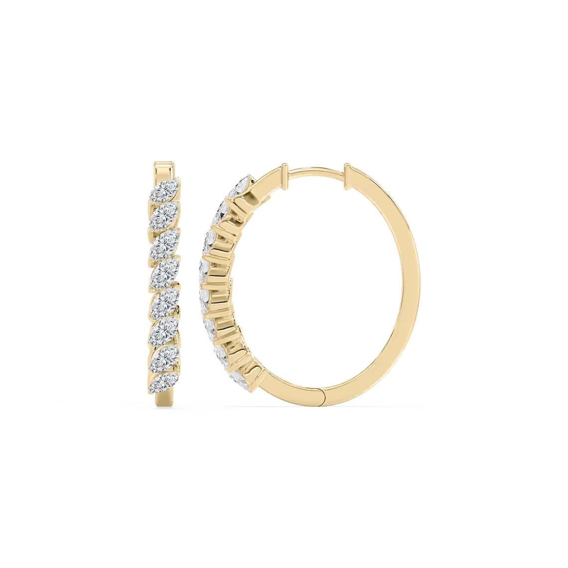Make a statement with our Marquise Lab-Grown Diamond Hoop Earrings, featuring a continuous row of perfectly aligned marquise-cut diamonds that create a sleek, elongated silhouette. Expertly crafted in your choice of 18K white, yellow, or rose gold, these earrings blend timeless sophistication with modern allure—ideal for elevating both refined occasions and everyday elegance.