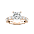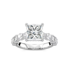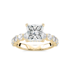 Princess Shaped Shared Prong Engagement Ring with Hidden Halo
