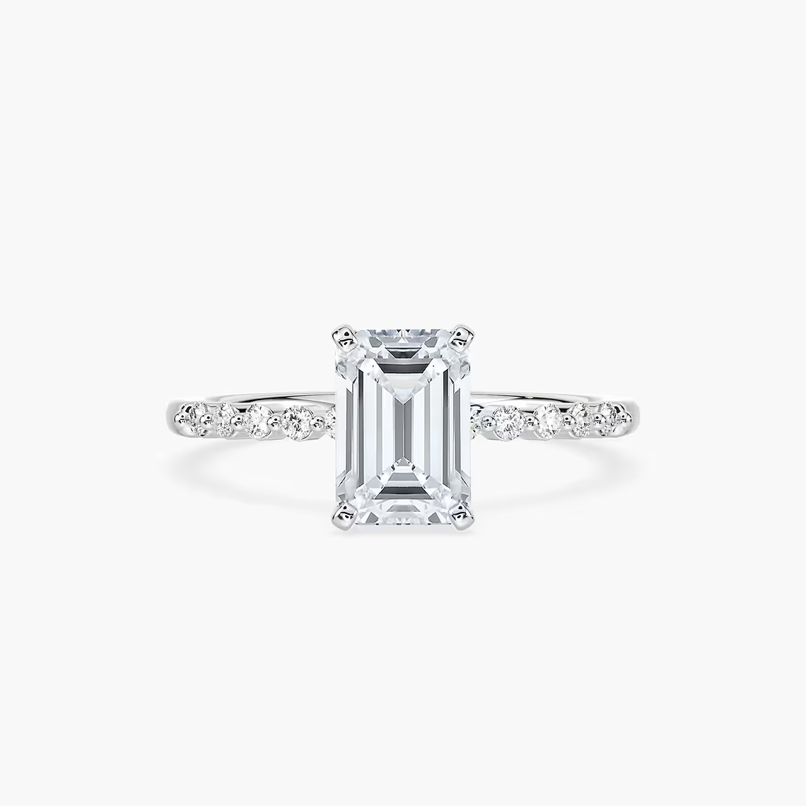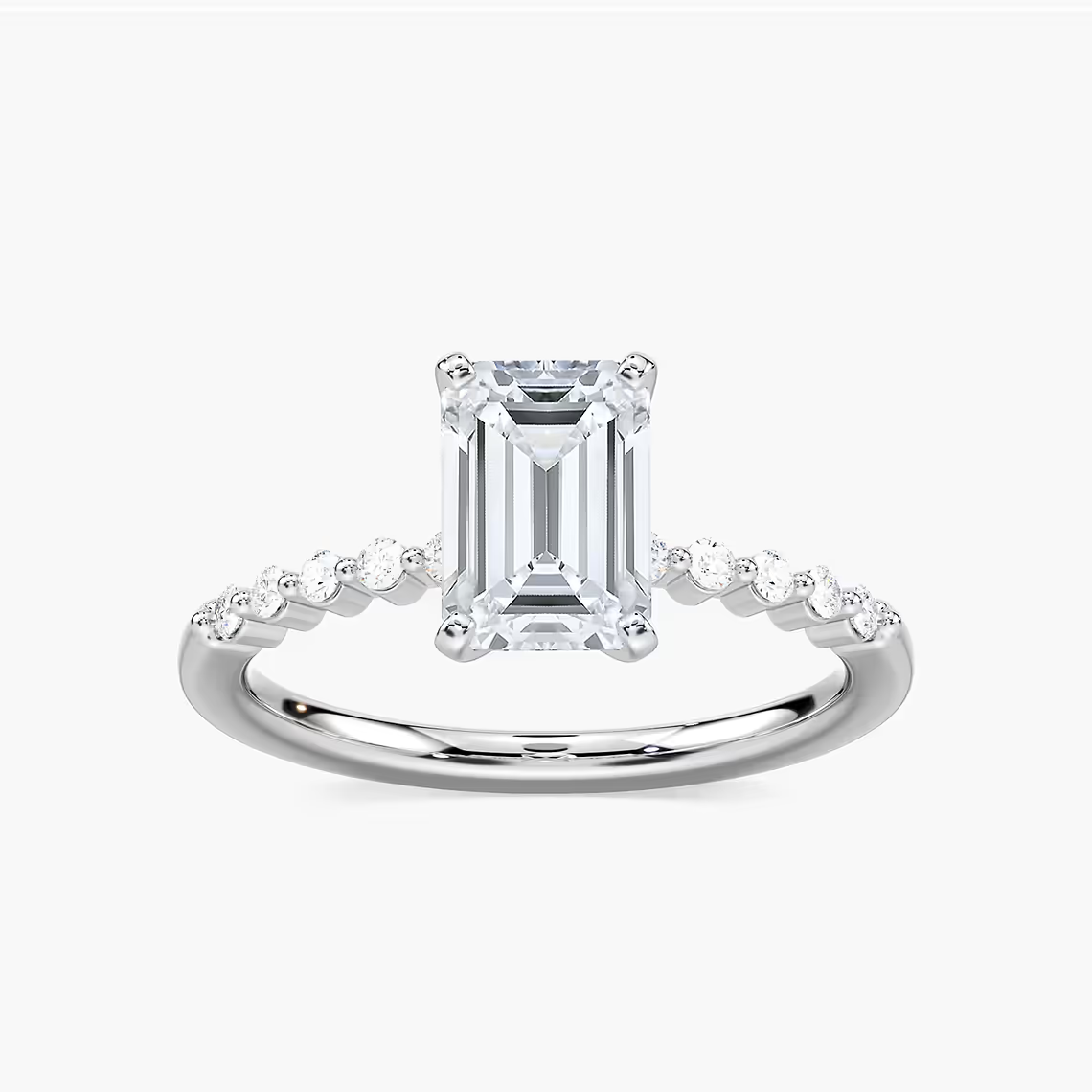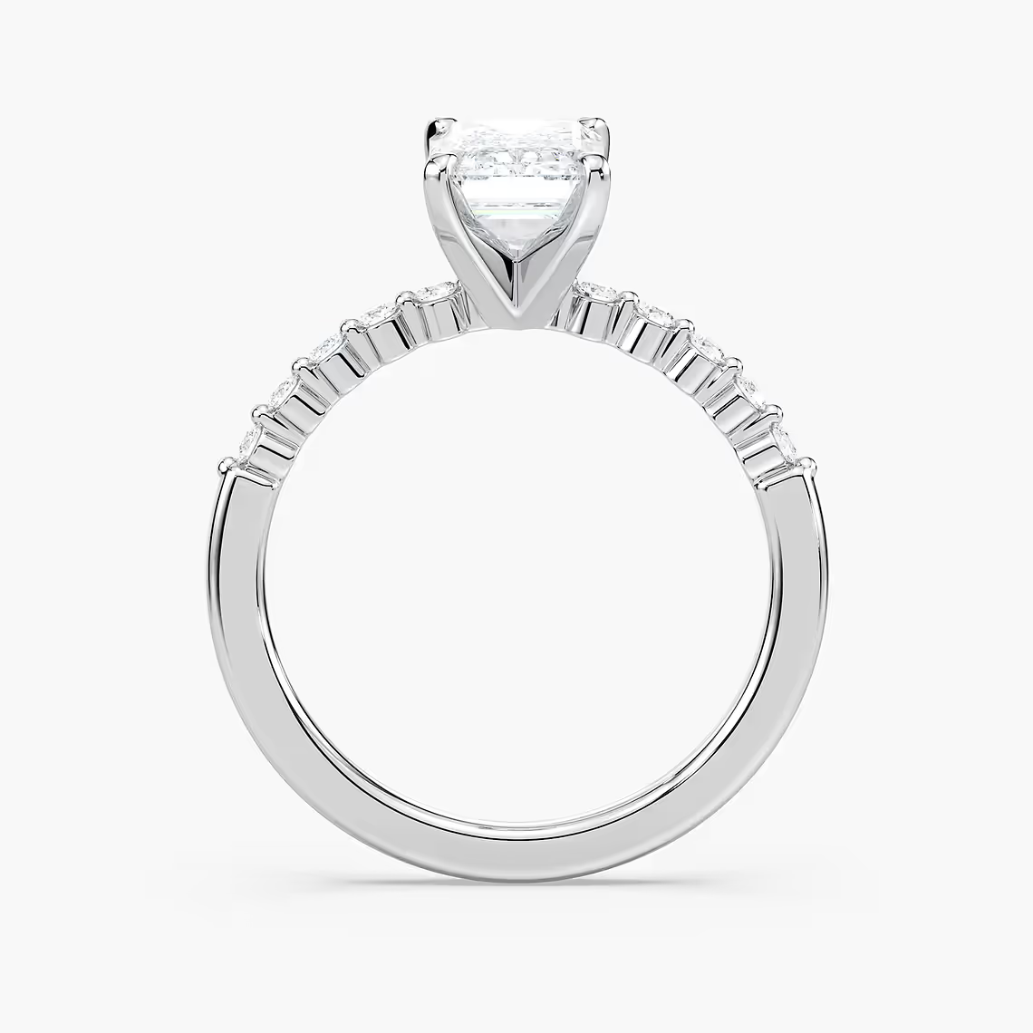 Emerald Cut Shared Prong Side Stone Engagement Ring