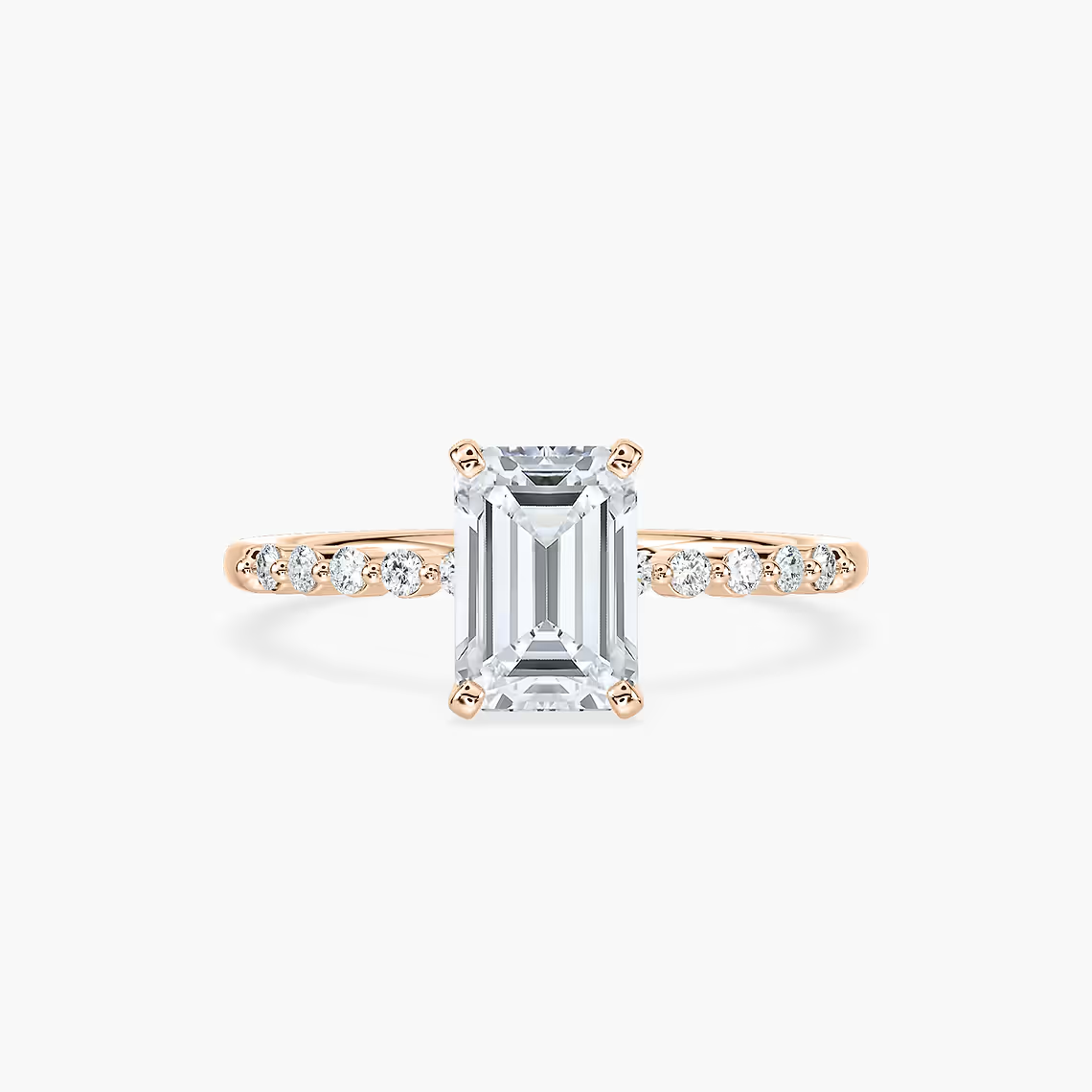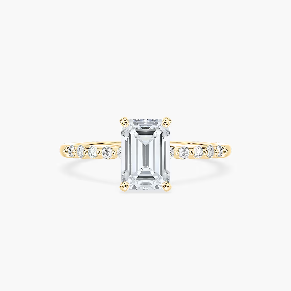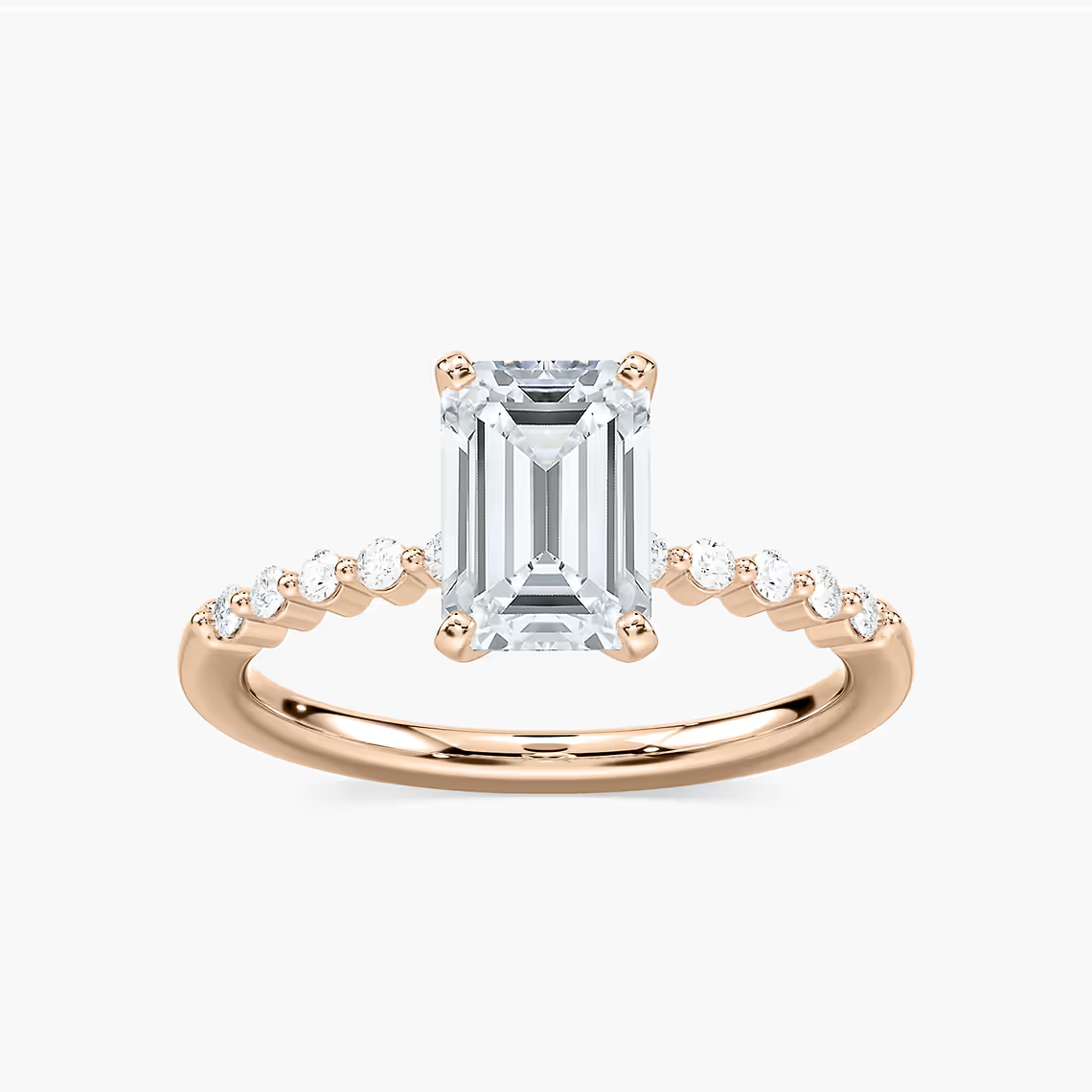 Emerald Cut Shared Prong Side Stone Engagement Ring