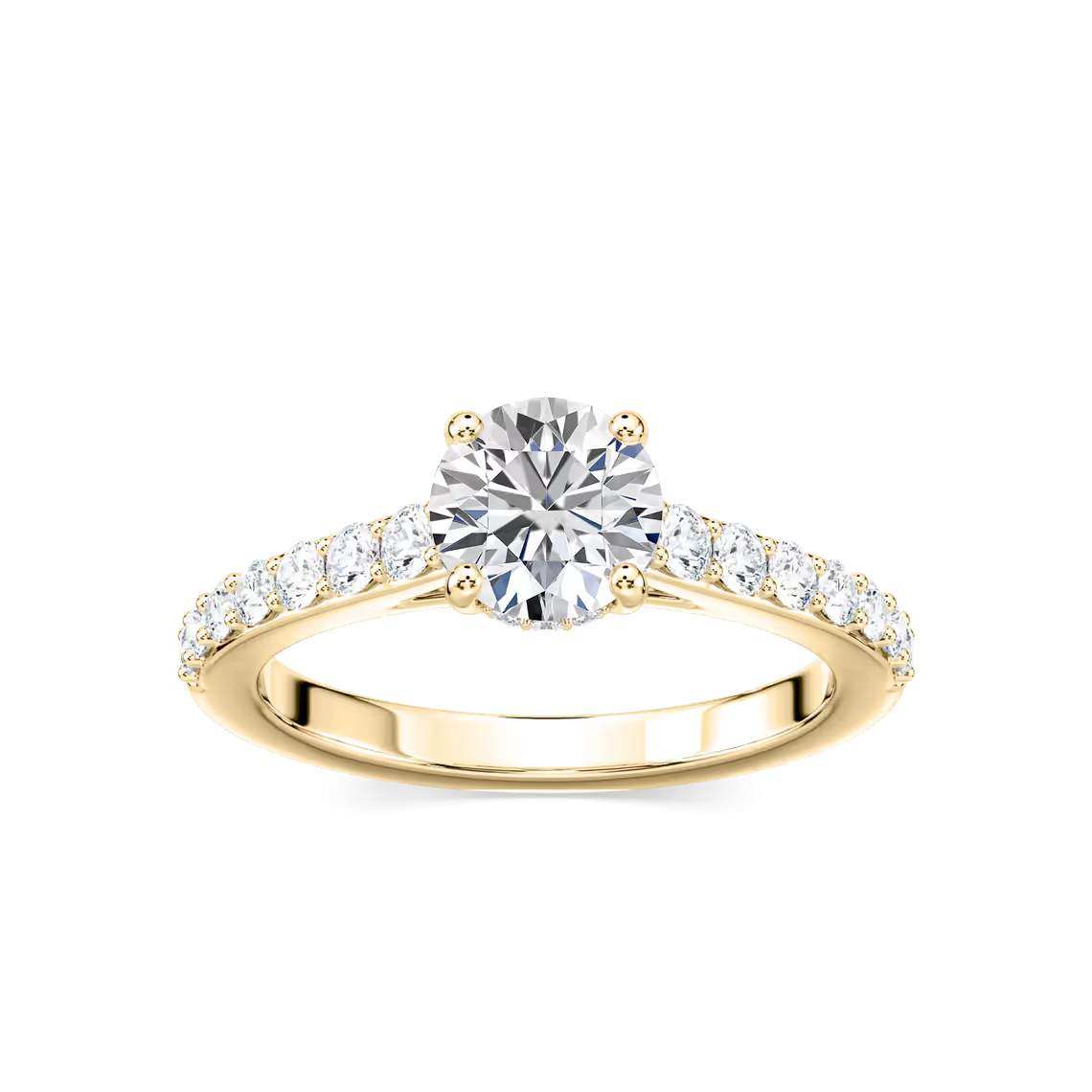 Heart Shaped Shared Prong Engagement Ring with Hidden Halo