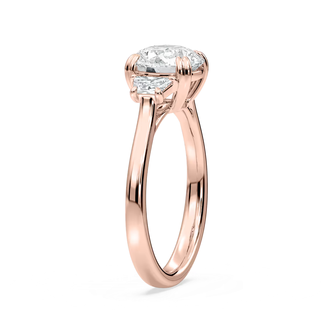 Oval Cut Shared Prong Side Stone Engagement Ring