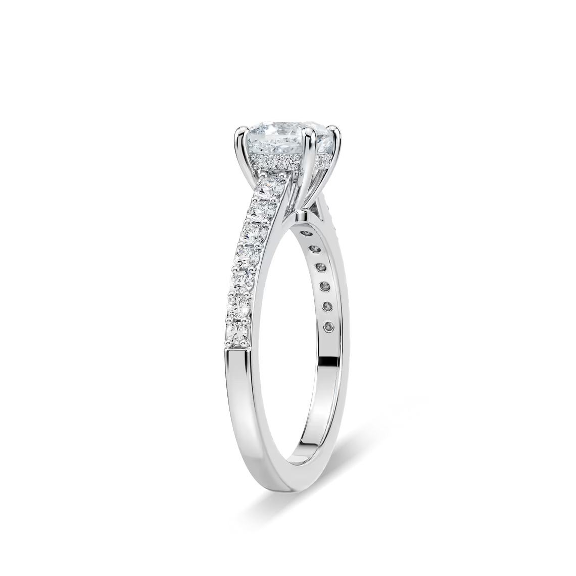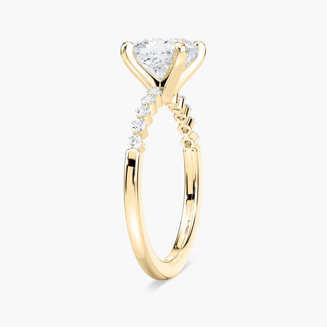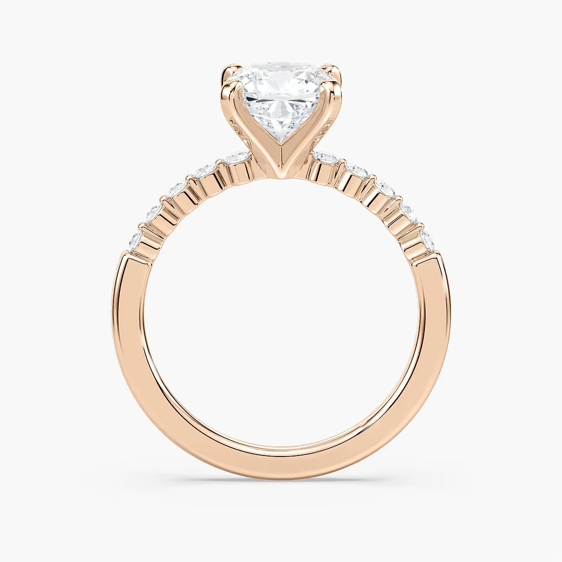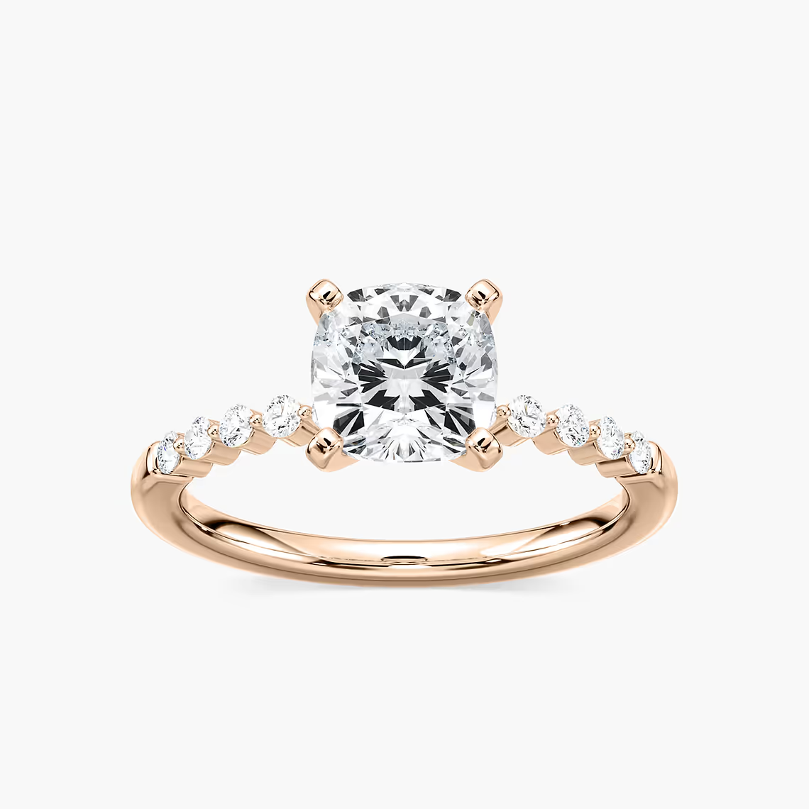 Cushion Cut Shared Prong Side Stone Engagement Ring