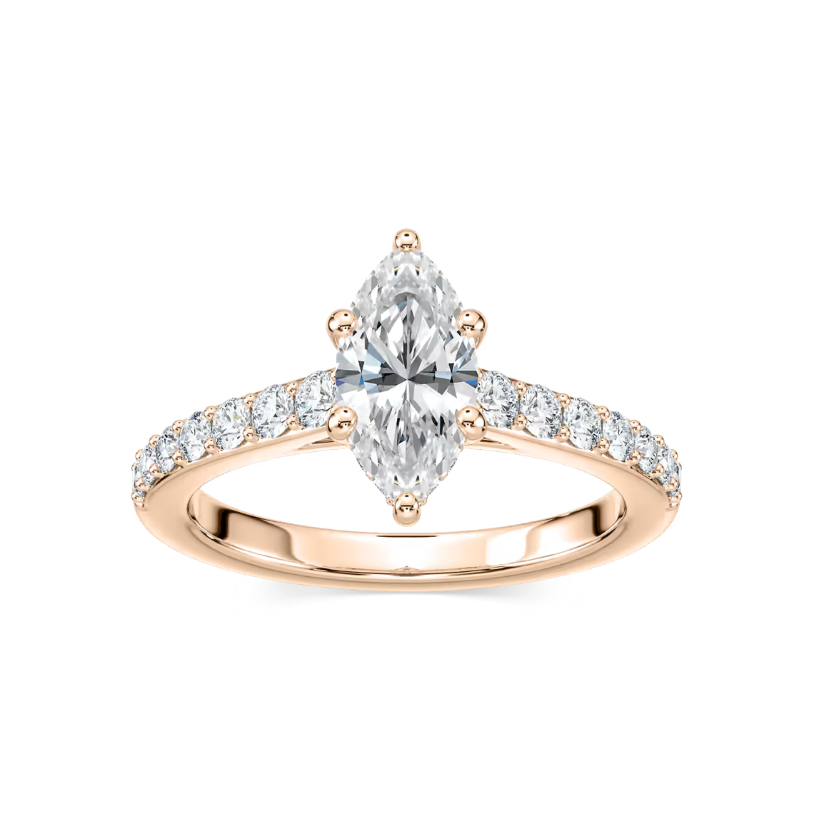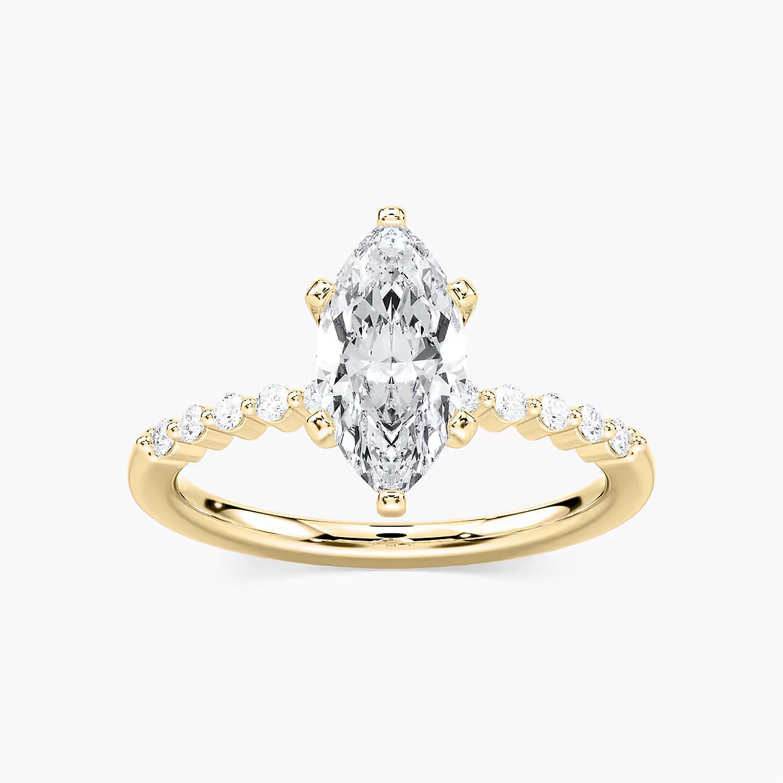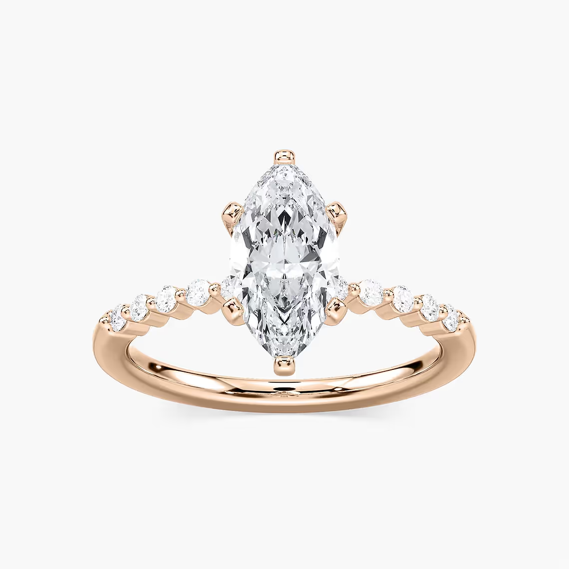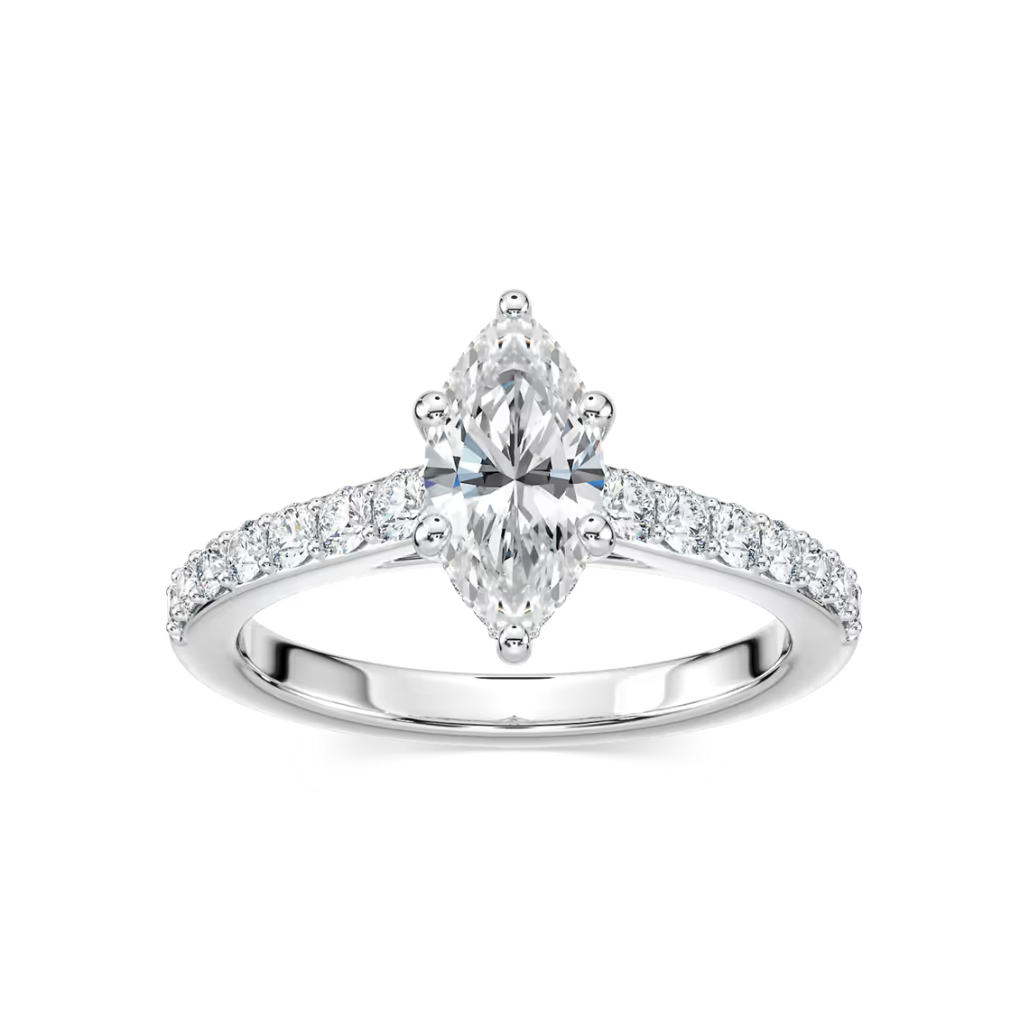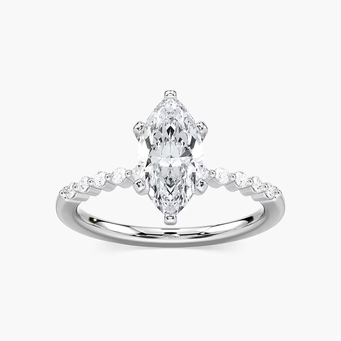 Marquise Cut Shared Prong Side Stone Engagement Ring