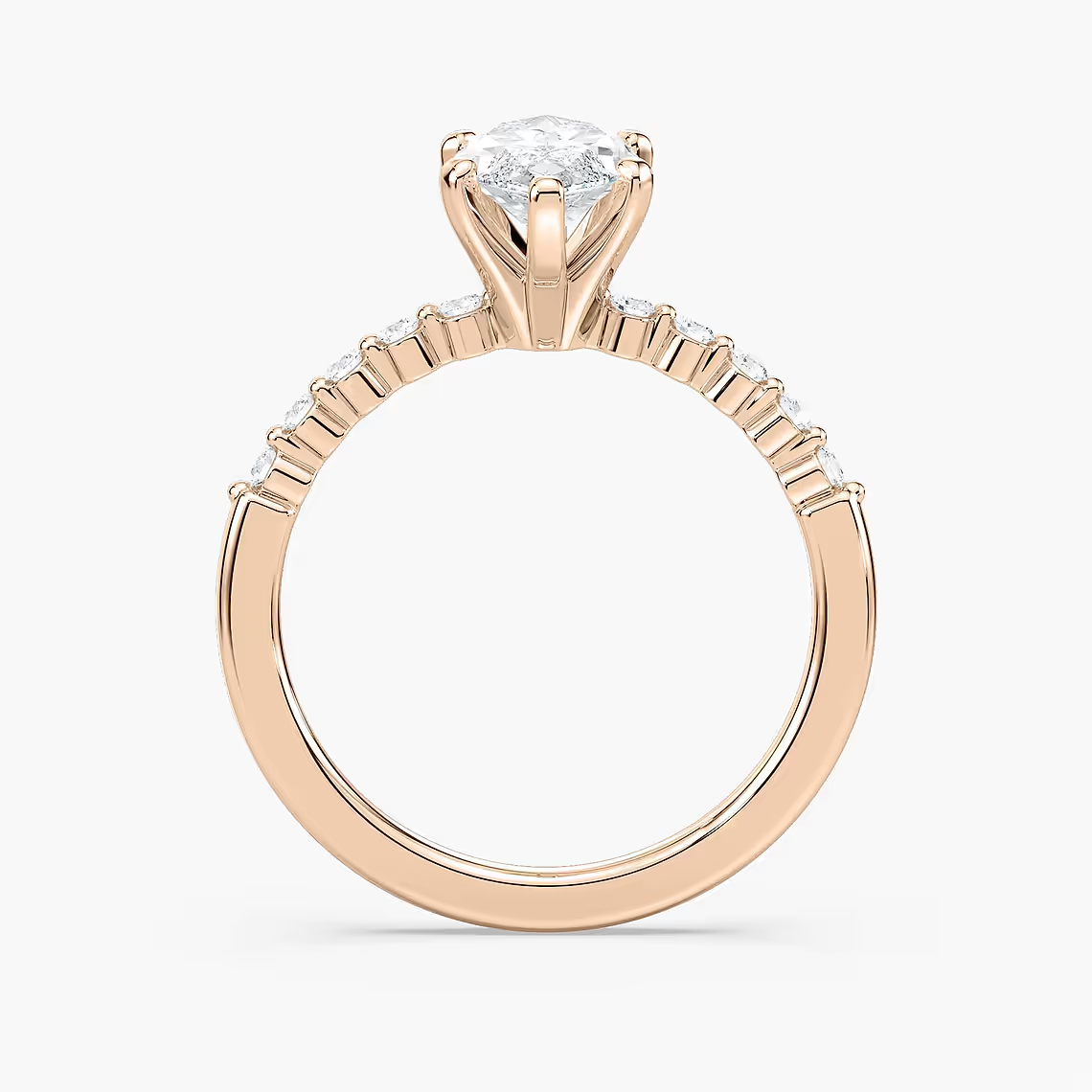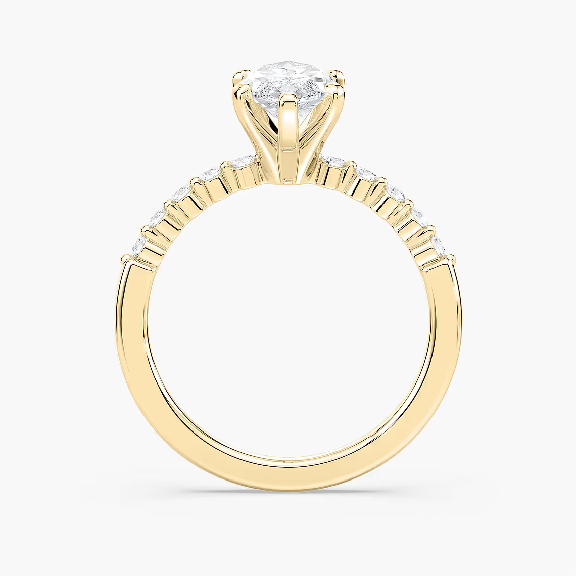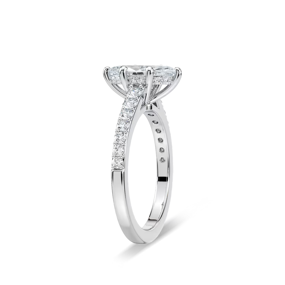 Pear Shaped Shared Prong Side Stone Engagement Ring