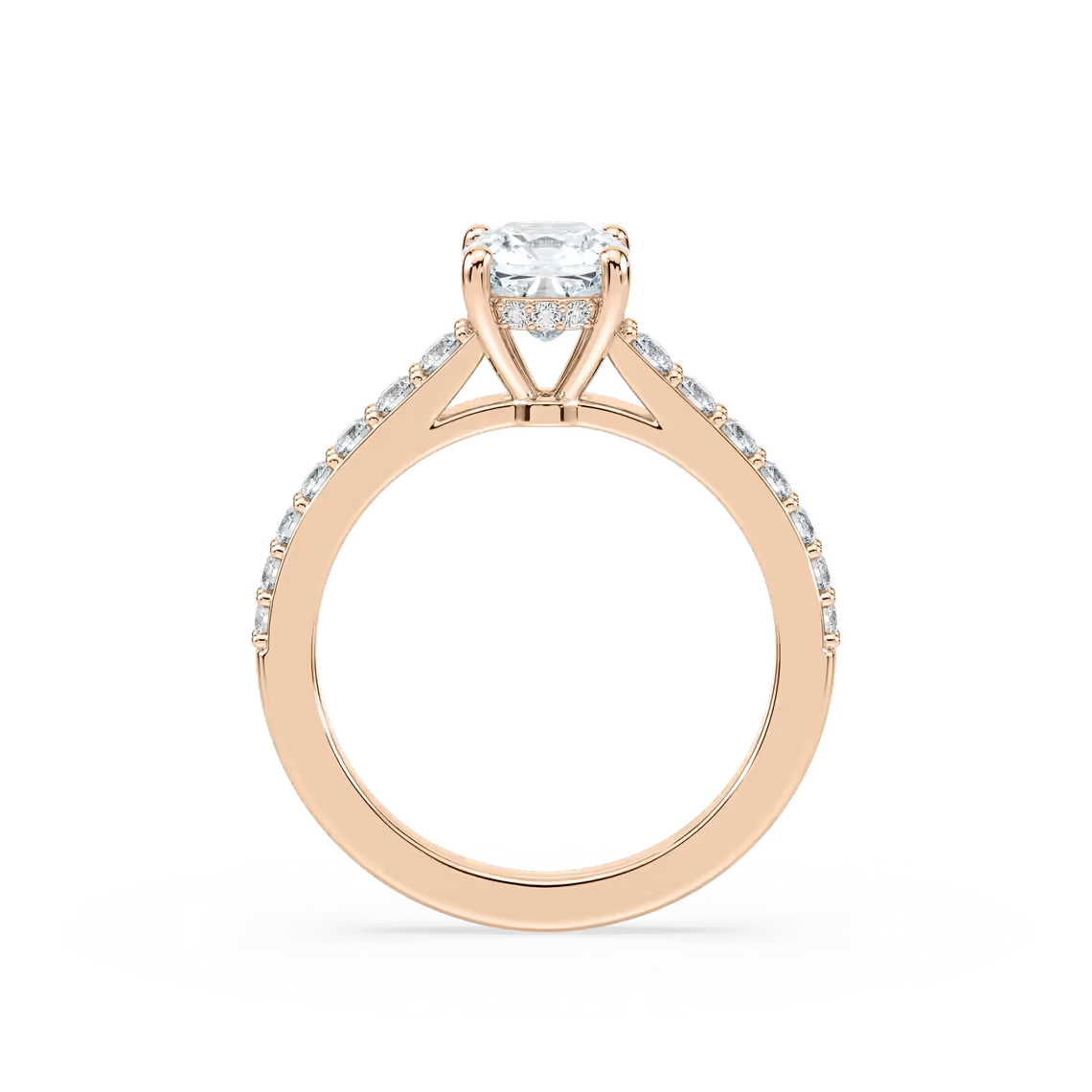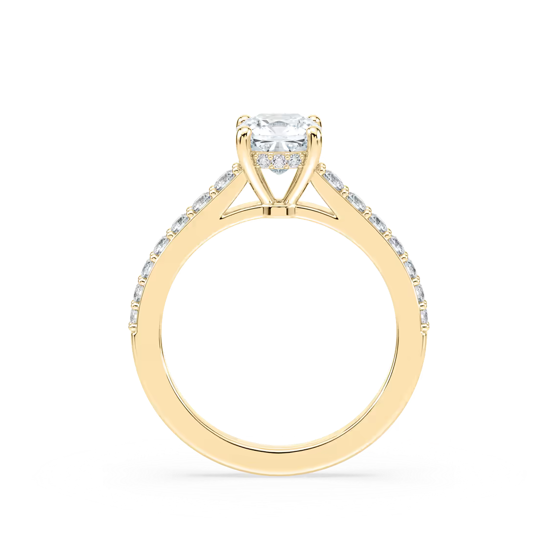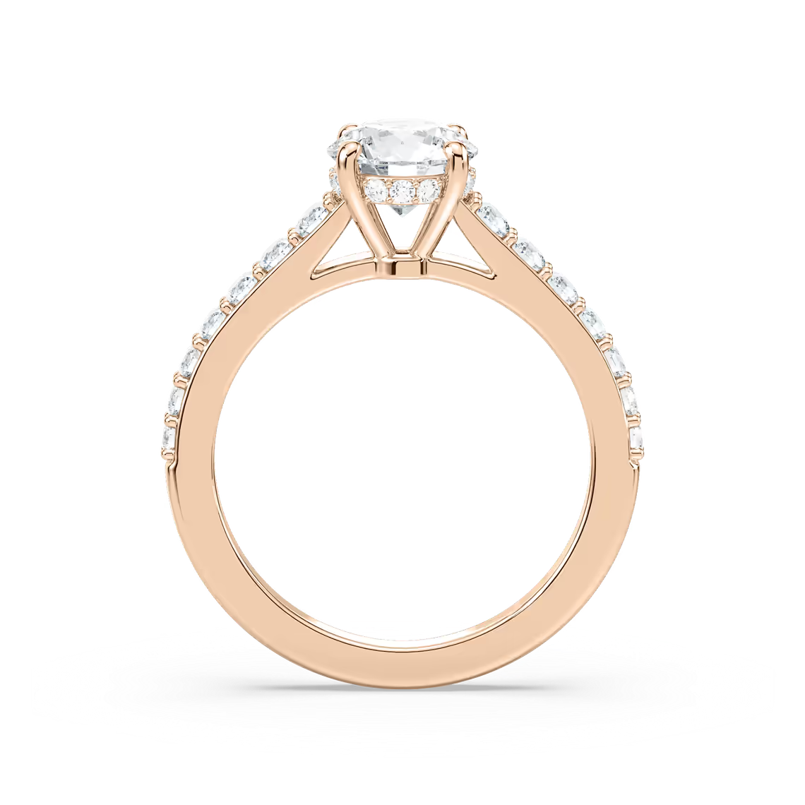 Oval Shared Prong Engagement Ring with Hidden Halo