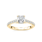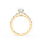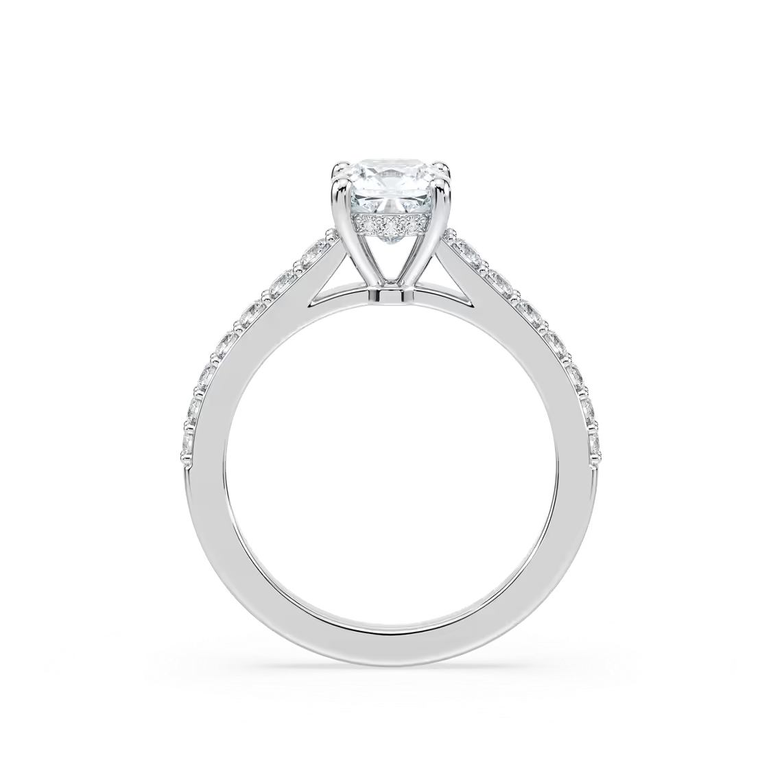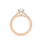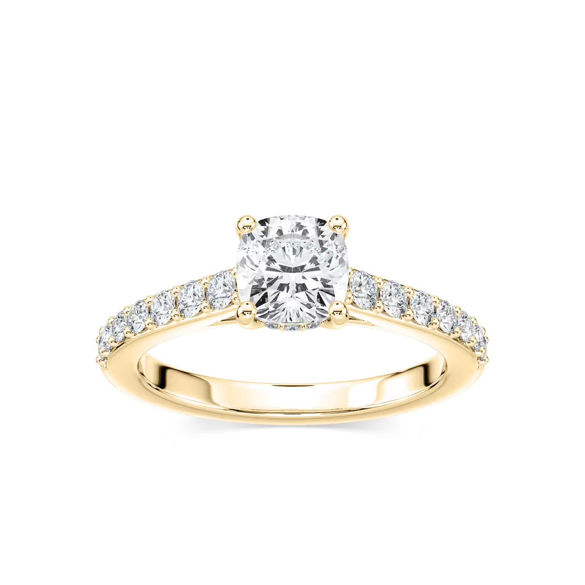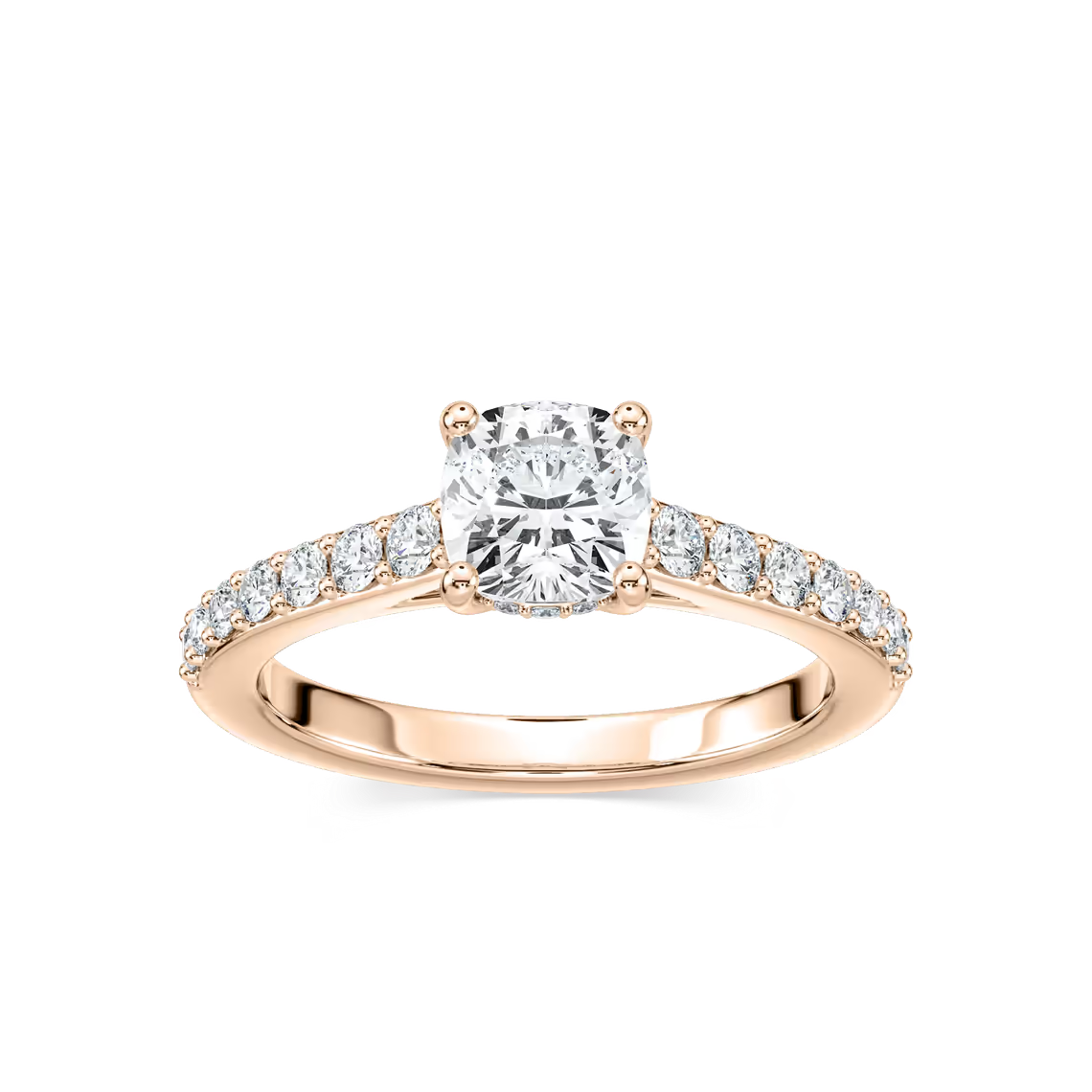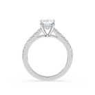 Cushion Shared Prong Engagement Ring with Hidden Halo