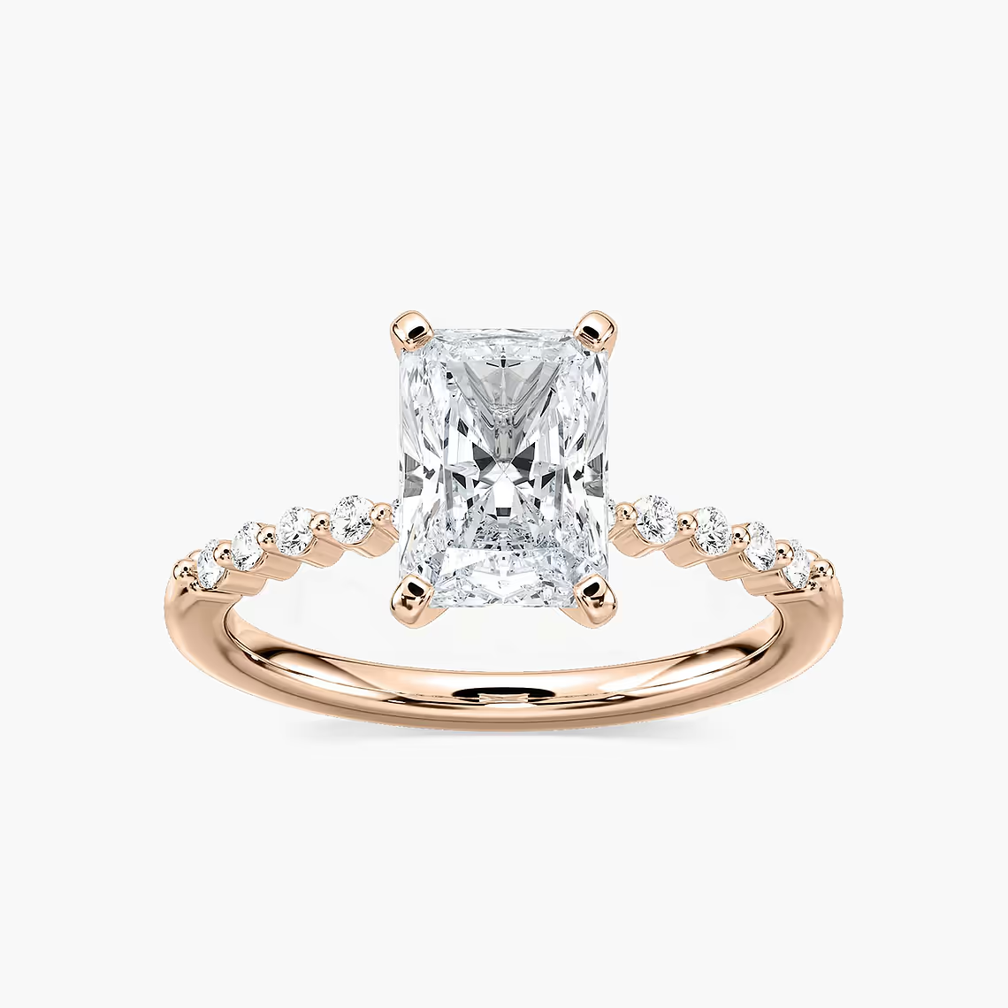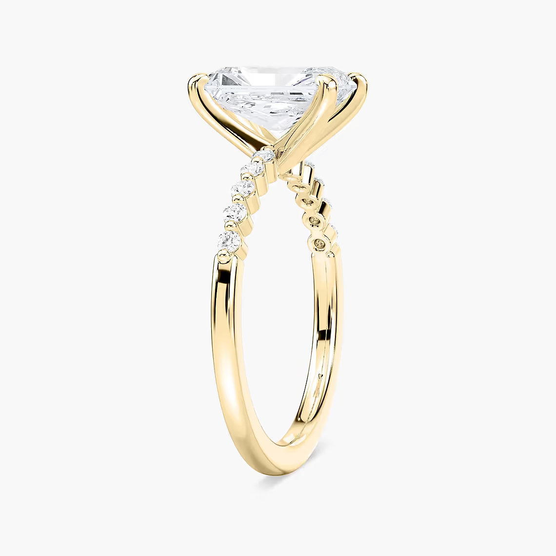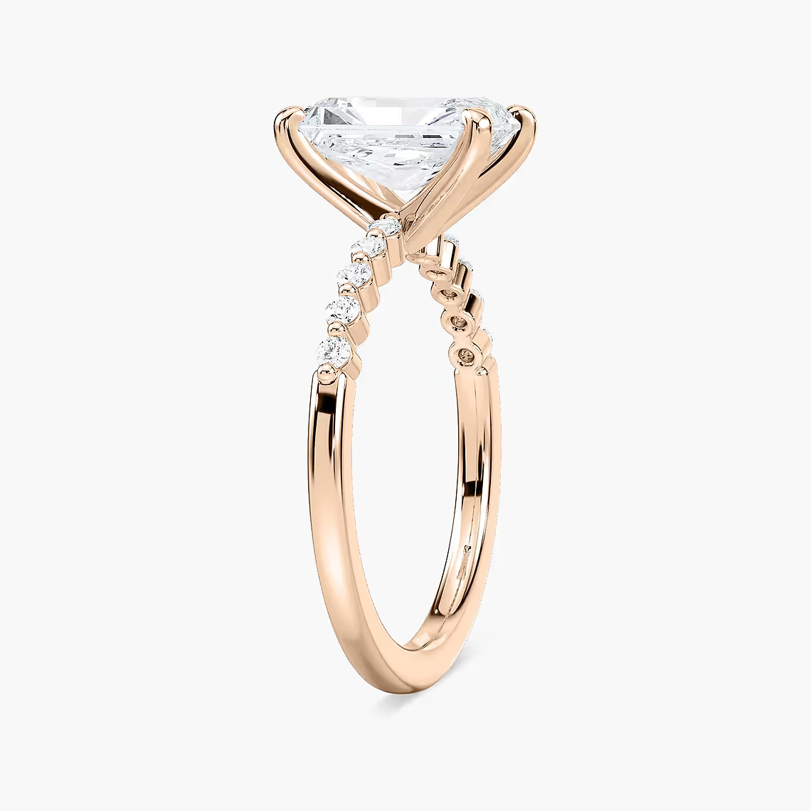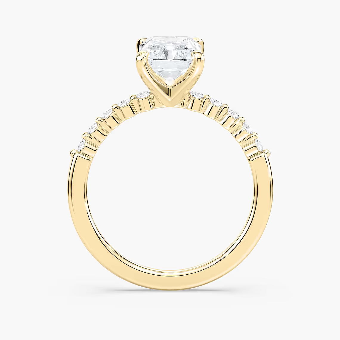 LOVEONLY Side Stone Engagement Rings embody elegance and brilliance, with sparkling diamonds or gemstones set along the band to enhance the beauty of the center stone. Meticulously handcrafted in recycled precious metals, each ring can be customized with lab-grown diamonds, a variety of stone shapes, and your choice of metal to create a unique design. Timeless yet radiant, this style offers a refined balance of detail and sophistication.