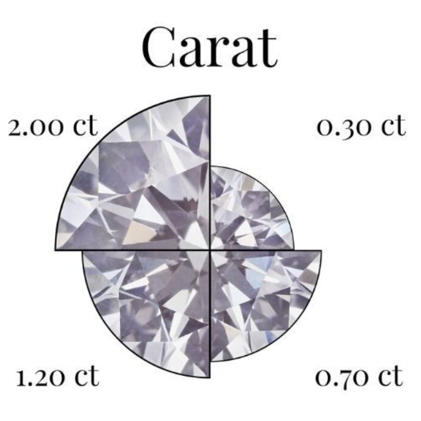Diamond carat refers to the unit of measuring the weight of a diamond, not the size. Nonetheless, as the carat weight increases, so does the physical size of the diamond. As an example of a round-cut diamond, view the sizes of diamonds of different carat weights in the charts. According to the GIA, one carat in the metric system is equivalent to 0.2 grams. Loveonly measures diamonds to 1/100th of a carat, one carat equals 100 points.