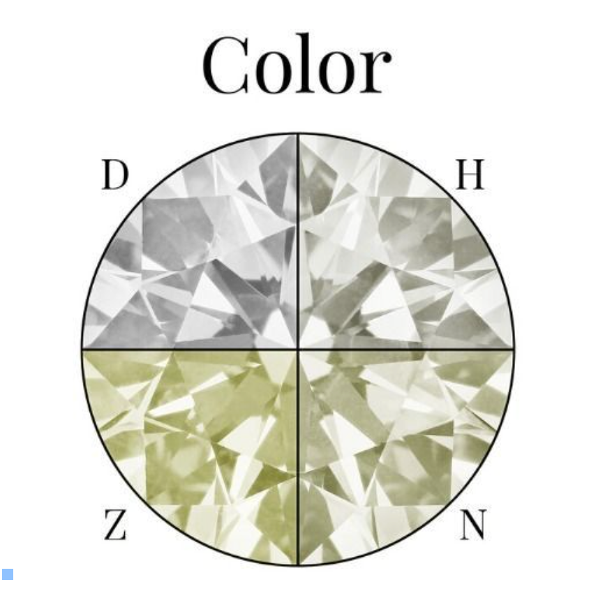 Diamond color is an indicator used to determine the subtle differences in color of a white diamond from colorless to yellow. The Gemological Institute of America classifies diamonds by color starting from D (colorless) to Z (yellowish). The closer a diamond color is to colorless (D grade) indicates the rarer the diamond (except for colored diamonds) and therefore the higher the value. Loveonly steadfastly upholds its commitment to superior quality by only accepting diamonds in the "Colorless" and "Near-Colorless" categories on the diamond color scale.