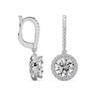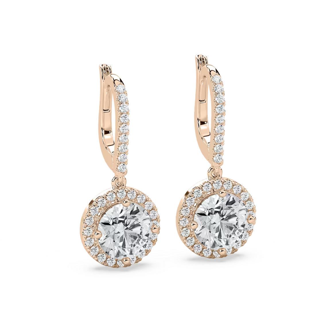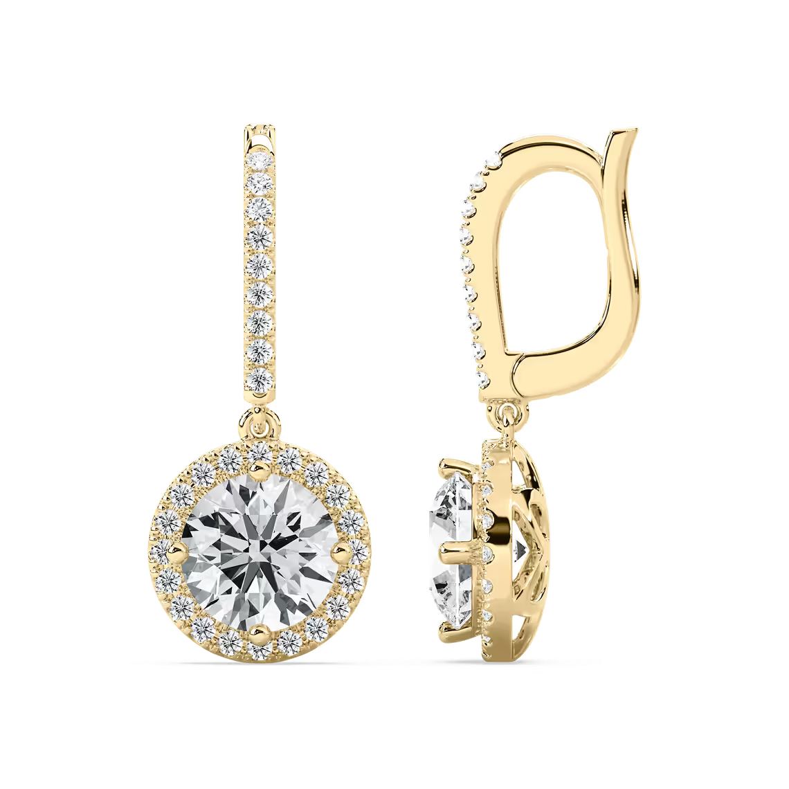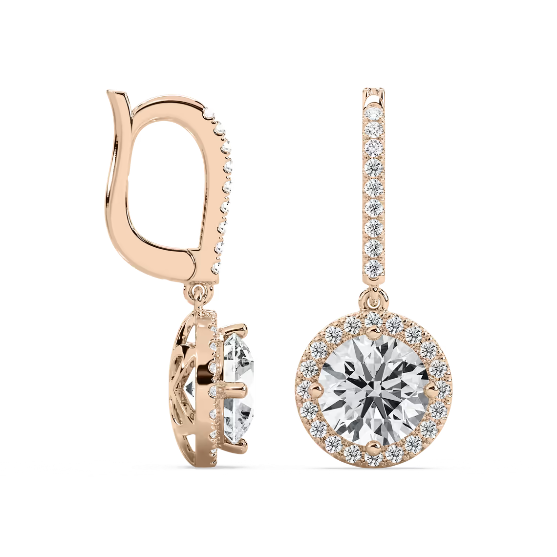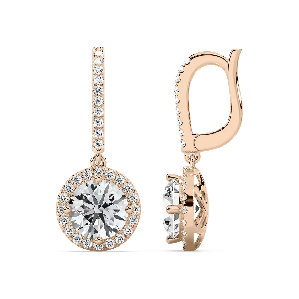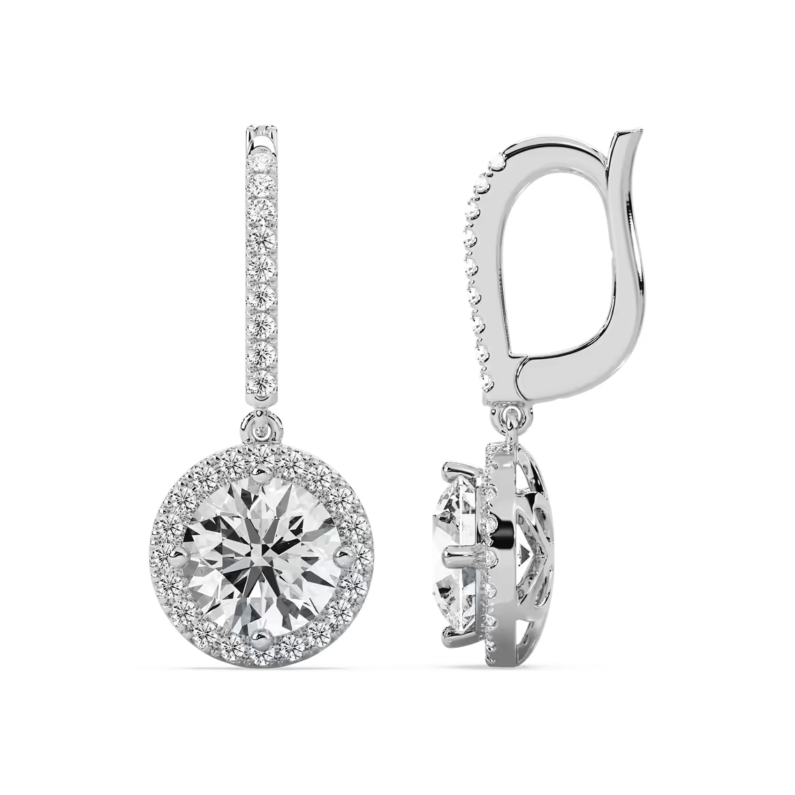 Round Cut Halo Lab Grown Diamond Drop Earrings